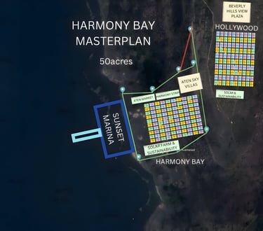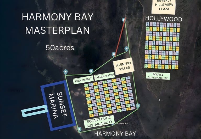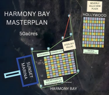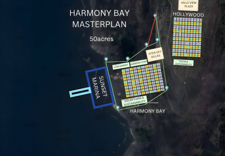 Harmony Bay is a premier 50-acre lakefront community within New Las Vegas, rising from the shores of Volta Lake to panoramic mountaintop views. Designed for luxury living and relaxation, it features villas, resort lounges, lake bars, and direct access to nature — blending tranquility with timeless investment value.