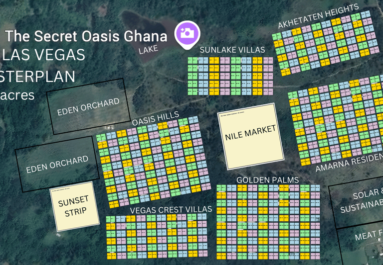 New Las Vegas Amarna Estates is a 200-acre gated eco-community in Ghana’s Volta Region, offering titled land ownership through blockchain-powered NFTs. Designed for income, lifestyle, and legacy, it blends luxury living, nature, and Web3 innovation — creating Africa’s first land-backed digital community.