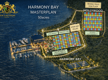 New Las Vegas Harmony Bay is a beautifully master-planned 50-acre lakeside development situated directly in front of the iconic Volta Lake — the largest man-made lake in the world. This exclusive eco-luxury enclave brings together high-value real estate, immersive tourism, vibrant culture, and sustainable innovation in one unforgettable destination.